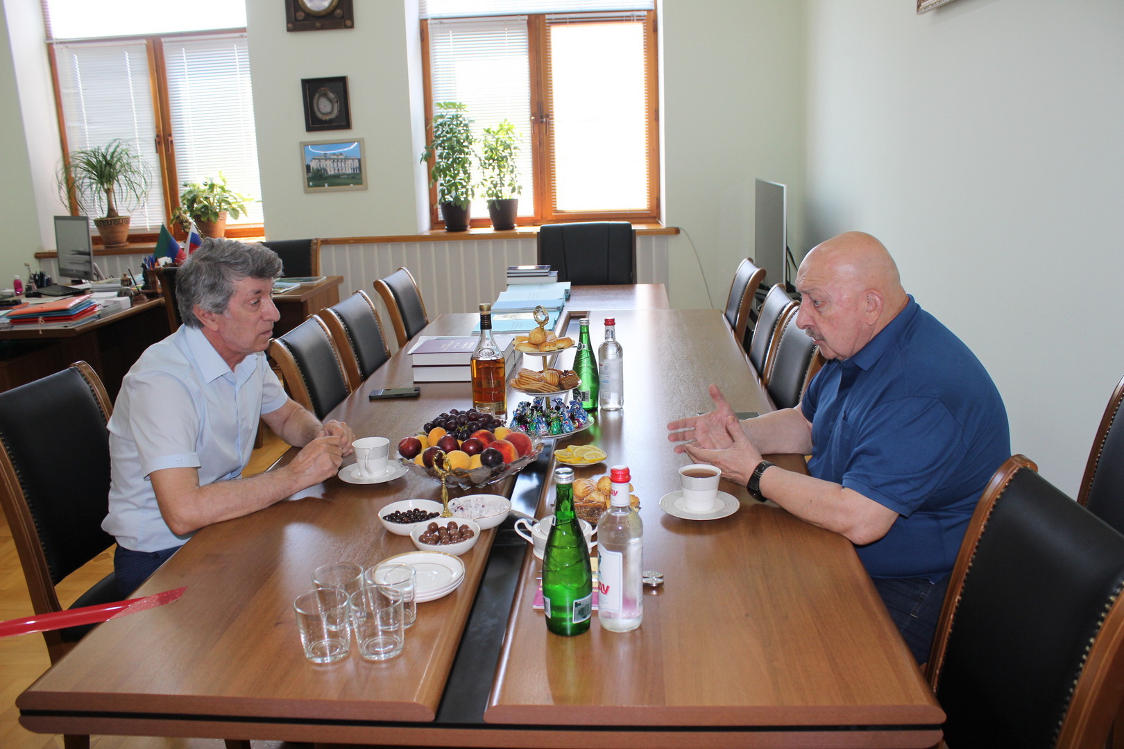 Сегодня, 31 июля, директор ДФИЦ РАН Акай Муртазаев встретился с Гаджиметом Сафаралиевым, научным руководителем Государственной корпорации «Ростех» АО «НИИ «Полюс» им. М.Ф. Стельмаха, доктором физико-математических наук, профессором, член-корреспондентом РАН, депутатом Государственной думы РФ.