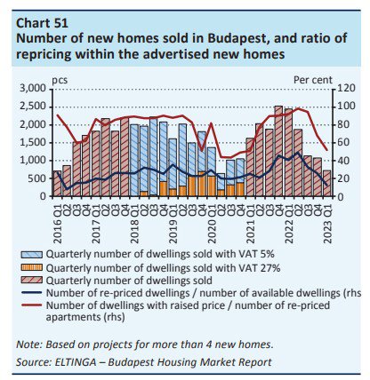 При этом по доступности жилья столица Венгрии занимает седьмое место среди самых дорогих городов Европы – в Будапеште требуется 16,2 года получать средний доход по стране, чтобы позволить себе купить квартиру или дом. В первом квартале 2023 года в Будапеште продано всего 712 новых квартир в кондоминиумах (включая предварительные и окончательные контракты), что на 71% меньше годовых показателей и на 34% – квартальных. Доля непроданных домов, стоимость которых была переоценена из-за падения спроса, снизилась с 25,8% по сравнению с предыдущим кварталом, до 12,3%. В течение квартала была снижена цена на 368 недавно построенных дома (48,4% от переоцененных квартир).