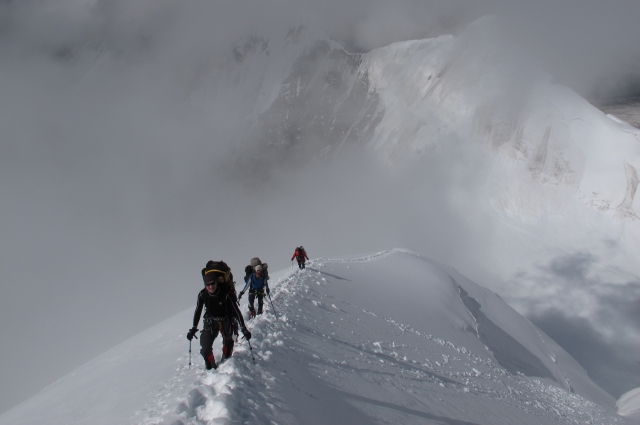 – Поднимался на неё дважды. Это огромная скальная гора высотой 7439 метров, покрытая льдом, на гребнях висят снежные карнизы, которые постоянно обваливаются. Если начинается снегопад и метель, надо выкапывать пещеру и пережидать. Тогда, на высоте 6900 м, мы сидели двое суток, потому что метель просто сбивала с ног.