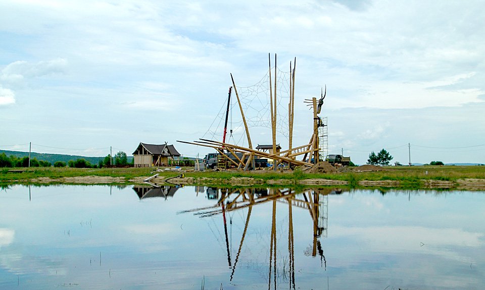«Дракон» из сосновых стволов Даши Намдакова на берегу реки Хилок.