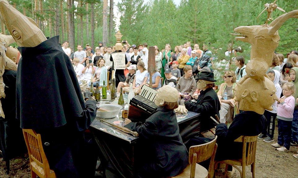 В два дня фестиваля трижды сыграли иммерсивный спектакль «Сон Татьяны», поставленный сценографом и режиссером Этелью Иошпой и Анастасией Смирницкой, актрисой и режиссером. Этот же спектакль театр «Пух и прах» играл на недавнем «Архстоянии», но перемена места — подмосковного леса на забайкальский — радикально его преобразила. Сюжет основан на пушкинских строках из главы V «Евгения Онегина» — той самой, где героине во сне видятся чудовища («…Один в рогах с собачьей мордой, Другой с петушьей головой, Здесь ведьма с козьей бородой, Тут остов чопорный и гордый, Там карла с хвостиком, а вот Полужуравль и полукот»). Всех этих персонажей зрители встретили рассевшимися за столом, а потом, повинуясь им, направились за предсказаниями. В укромных уголках леса их повстречали Арина Родионовна, гадавшая желающим по томику «Евгения Онегина», очаровательный медведь-ловелас и сам Пушкин. Который в финальной трагической сцене погиб, выматывая из живота алые ленты, и на ангельских крыльях унесся на небо.