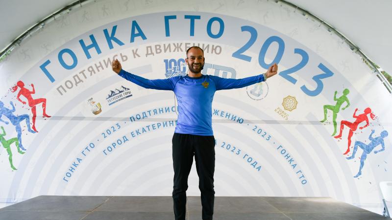 Затем разминку с участниками Гонки ГТО «Подтянись к движению» в рамках акции «Зарядка с чемпионом» провел многократный чемпион России по лыжному двоеборью, победитель Всемирной Универсиады-2015 в Словакии, триумфатор недавних международных соревнований «Горный орёл» в Сочи, участник Олимпийских игр в Пекине-2022, представитель спортивной школы «Уктусские горы» Самир Мастиев.