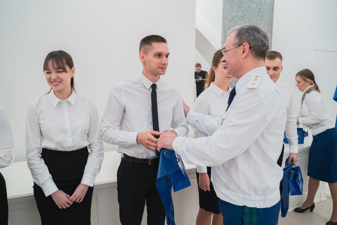 Затем в актовом зале прокуратуры прошла церемония принятия Присяги прокурора молодыми специалистами. В торжественной обстановке они произнесли клятву о посвящении себя служению Закону, о непримиримой борьбе с любыми его нарушениями, об активной защите интересов личности, общества и государства, о чутком и внимательном отношении к предложениям, заявлениям и жалобам граждан, о постоянном совершенствовании своего мастерства, сохранении и приумножении лучших традиций прокуратуры.