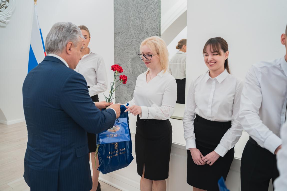 С напутственными словами к молодым работникам прокуратуры обратились прокурор Курской области Алексей Николаевич Цуканов, пенсионер органов прокуратуры Николай Васильевич Студеникин, Митрополит Курский и Рыльский Герман.