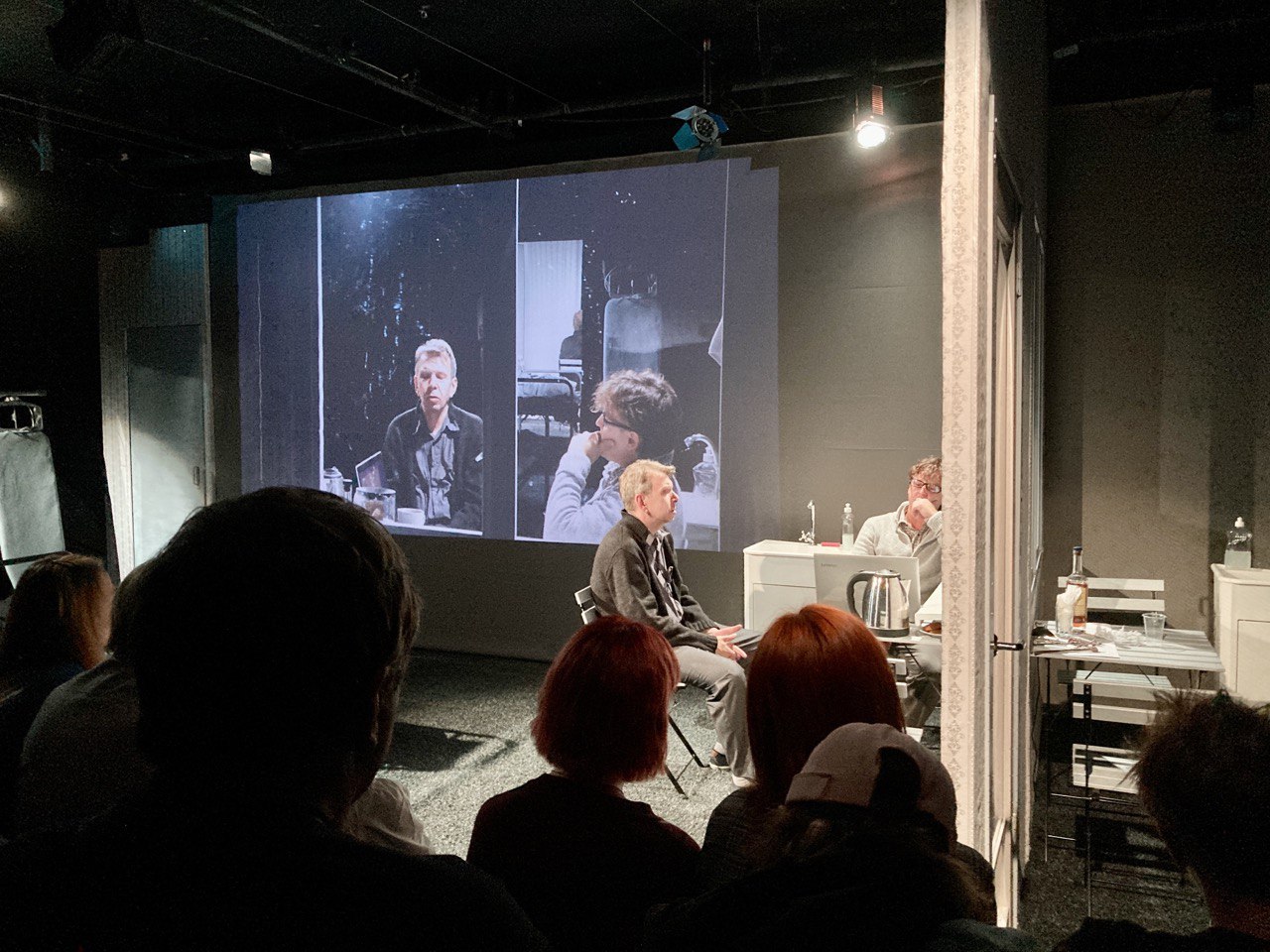 Спектакль у Шерешевского получился про истечение жизни в пространстве, где жизненные силы нечем и неоткуда пополнять. Это какая-то блокадная реальность, которую Надежда Лопардина придумала как две зеркально похожие комнаты со столиком и стульями из интерьерного супермаркета, раковиной и больничной (со скрипящими пружинами) кроватью по центру в каждой. Дурная бесконечность этих комнат легко домысливается тем более, что два больших экрана-задника услужливо подкидывают третью комнату.