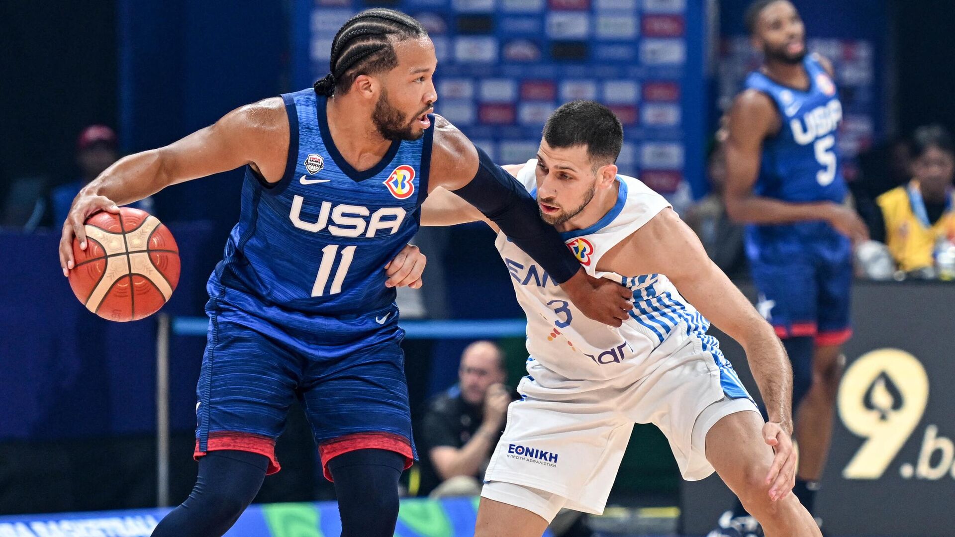 Встреча группы С, которая прошла в Маниле (Филиппины), завершилась со счетом 109:81 (23:19, 27:18, 29:19, 30:25) в пользу американцев. Самым результативным игроком матча стал центровой греков Георгиос Папаяннис, на счету которого 17 очков. В составе американцев больше всех очков набрал защитник Остин Ривз (15).