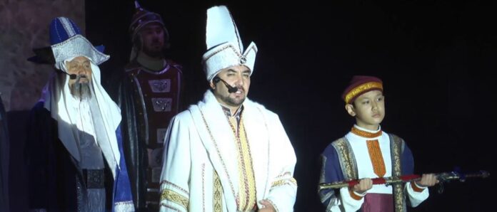 В Шымкенте ко Дню Конституции показали театральную постановку об истории законов казахских ханов. На сцене выступали артисты.