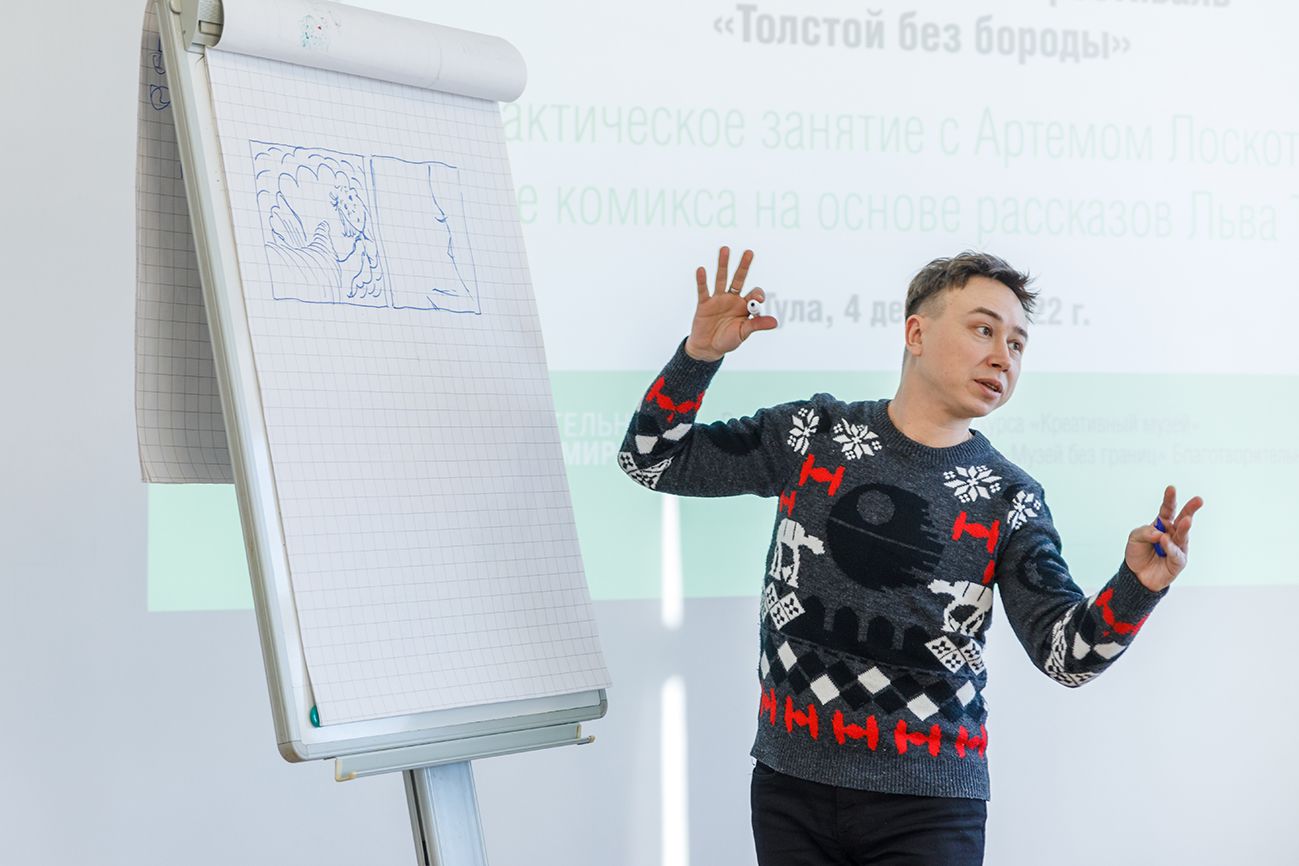 Самые активные участники получат подарки от музея-усадьбы «Ясная Поляна», призы от тульской сети барбершопов и блиц-портреты от художника Артема Лоскота — куратора направления «Комикс» проекта «Толстой без бороды».