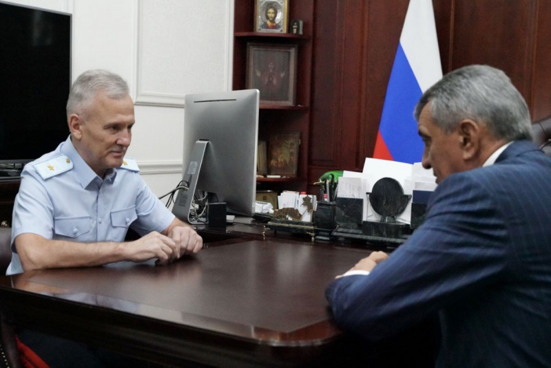 Начальник Управления на транспорте Министерства внутренних дел Российской Федерации по Северо-Кавказскому федеральному округу генерал-майор полиции Сергей Басов в ходе поездки провел рабочие встречи с Главой Республики Ингушетия Махмудом-Али Калиматовым и Главой Республики Северная Осетия-Алания Сергеем Меняйло. Стороны обсудили вопросы обеспечения антитеррористической защищенности объектов транспорта, а также взаимодействие республиканских органов власти и Управления по программам правоохранительной направленности. Сергей Басов поблагодарил Глав Республик за продуктивное сотрудничество с их ведомством.