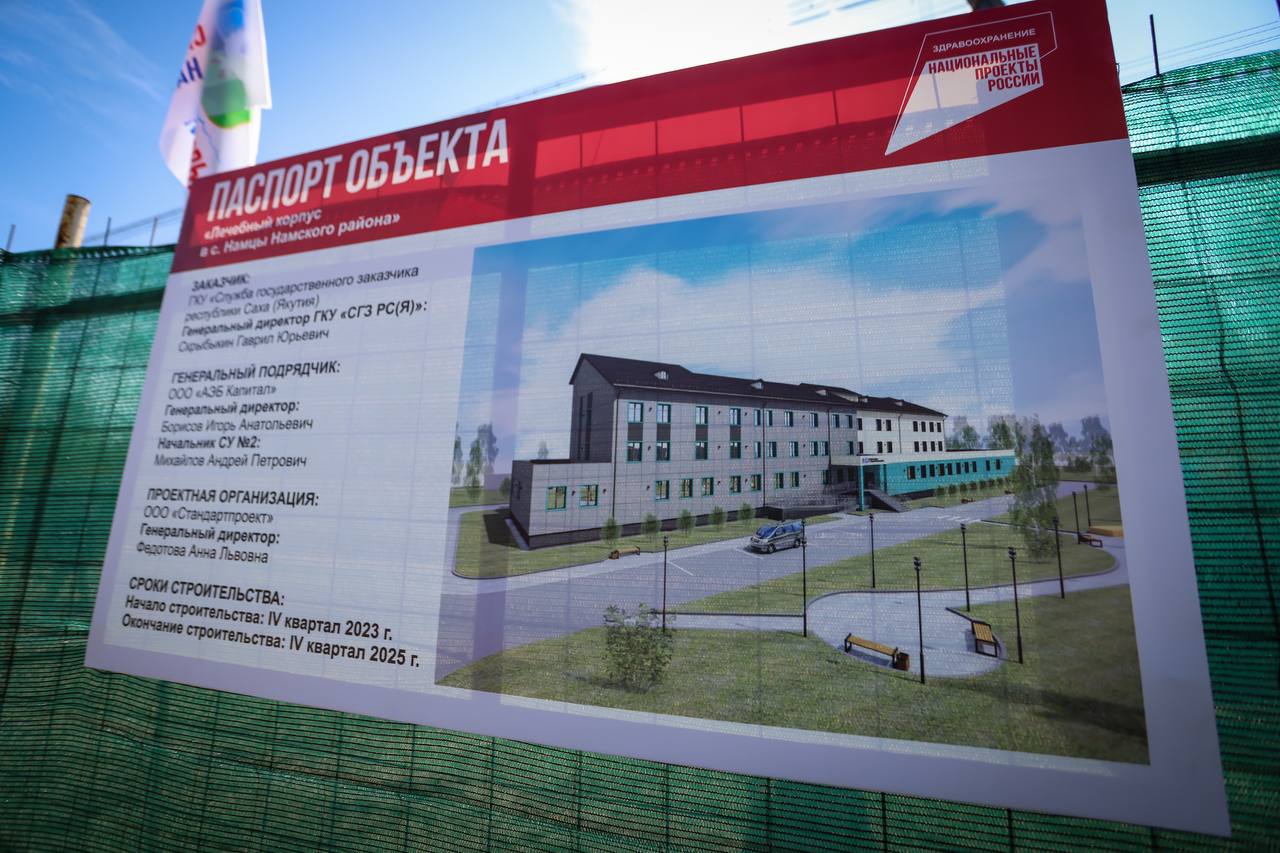 В селе Намцы Намского улуса установили сваю нового лечебного корпуса. В торжественной установке принял участие Глава Якутии Айсен Николаев и министр строительства Павел Кылатчанов. Ввод нового объекта запланирован в 2025 году.