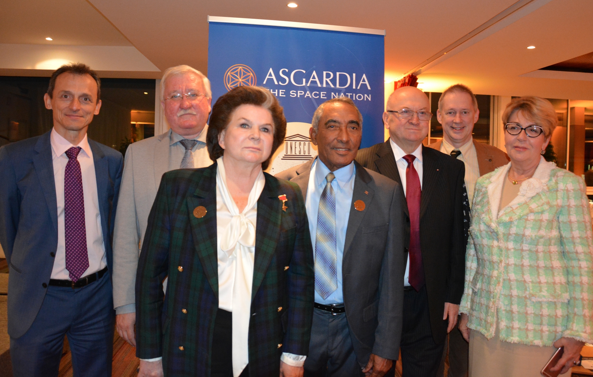 27 октября 2017 года в штаб-квартире ЮНЕСКО в Париже состоялось историческое событие. Генеральный директор ЮНЕСКО Ирина Бокова и Глава Асгардии Игорь Ашурбейли вручили четырём лауреатам медаль ЮНЕСКО «За вклад в науку о космосе». На фото слева направо: испанский космонавт Педро Дуке, Глава Асгардии и Президент Международной комиссии ЮНЕСКО по космосу Игорь Ашурбейли, первая в мире женщина-космонавт Валентина Терешкова, первый кубинский космонавт Арнальдо Тамайо Мендес, первый чешский космонавт и посол Чехии в РФ Владимир Ремек, второй бельгийский космонавт, первый европейский командир МКС и руководитель Европейского центра подготовки астронавтов Франк де Винне, посол МИД РФ по особым поручениям Элеонора Митрофанова.