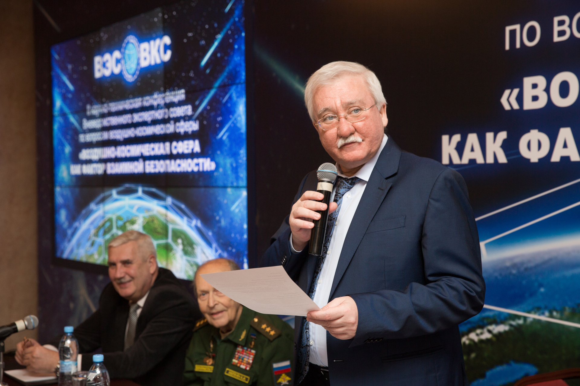 Председатель Президиума ВЭС ВКС Игорь Ашурбейли вел заседание II научно-технической конференции «Воздушно-космическая сфера как фактор взаимной безопасности». Декабрь 2016 г.