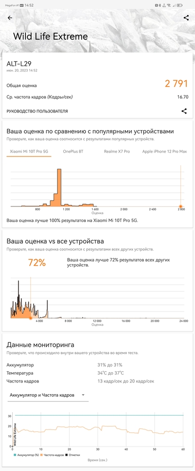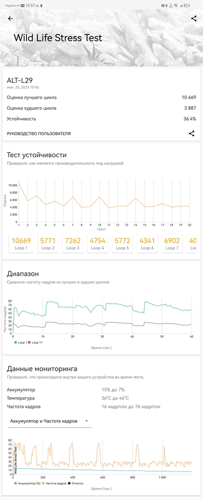 - Wild Life Stress Test – 10669 (лучшая), 3887 (худшая)