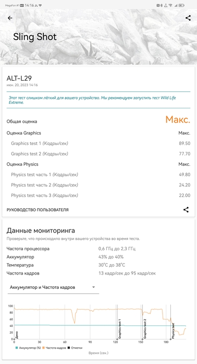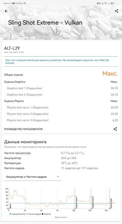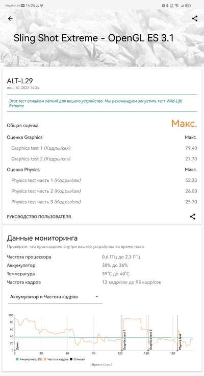 В 3D Mark смартфон смог справиться со всеми тестами и показал в некоторых тестах не самые лучшие результаты для данного чипа: