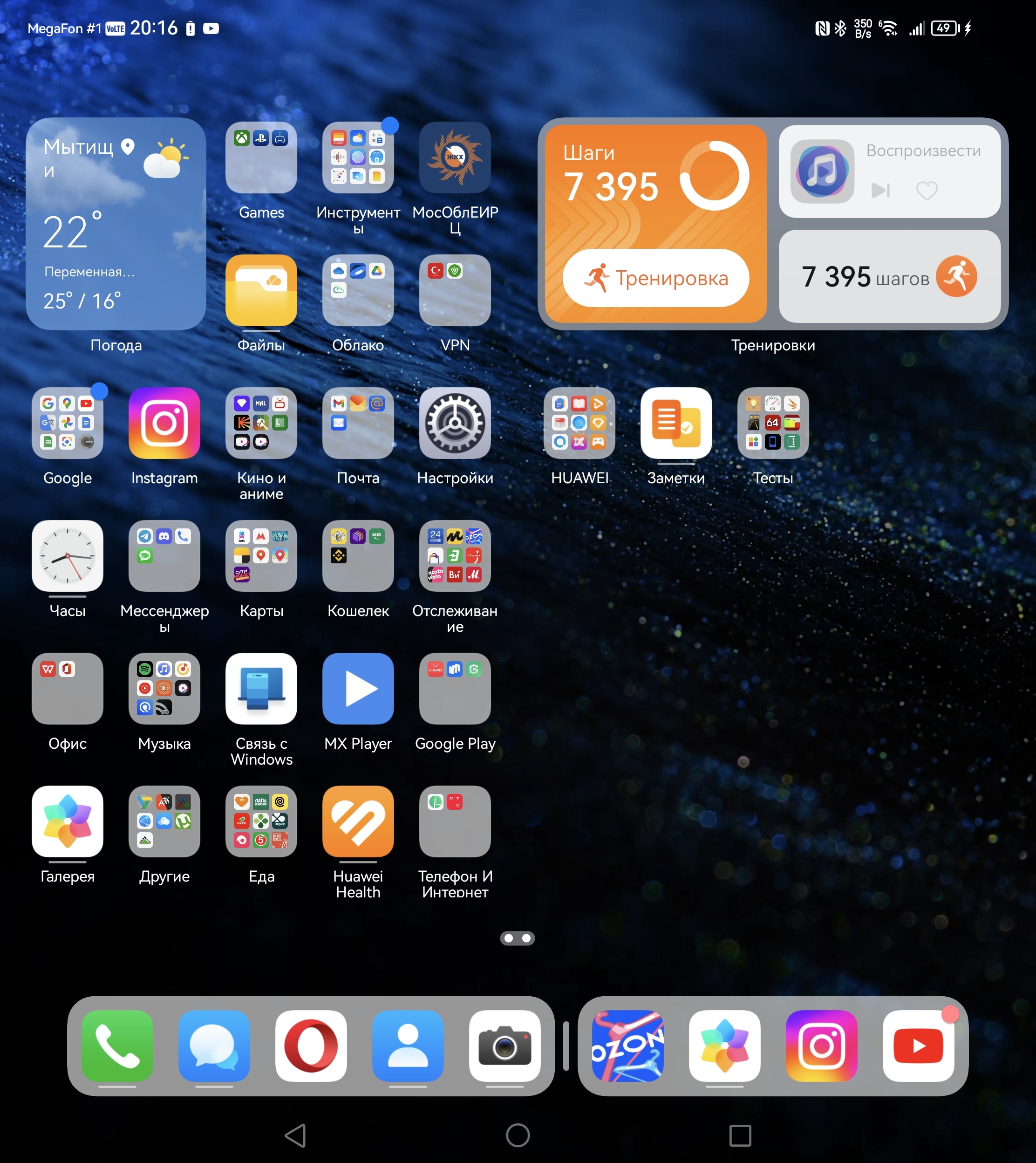 Интерфейс напоминает о планшетах HUAWEI и в целом достаточно хорошо адаптирован под данный нестандартный формат. Мы не нашли популярного приложения, которое плохо бы масштабировалось. Будь то YouTube, “Яндекс Музыка”, Telegram, сервисы доставки, маркетплейсы или банковские программы - все они открываются на полный экран, и элементы интерфейсов не растягиваются.