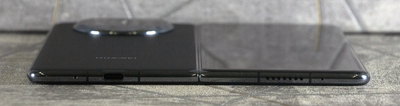 Когда впервые берёшь в руки HUAWEI Mate X3, сразу диву даёшься - удивляет, насколько он тонкий. Толщина в разложенном виде составляет всего 5 мм, а в сложенном состоянии - около 11 мм из-за конструкции шарнира и без учёта выпирающего на 3-4 мм блока камеры.