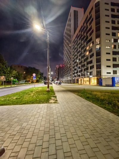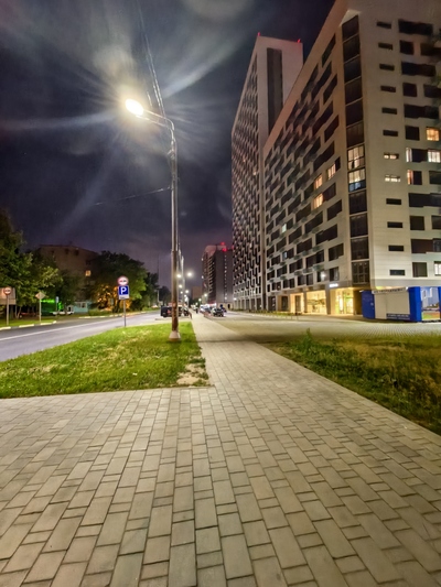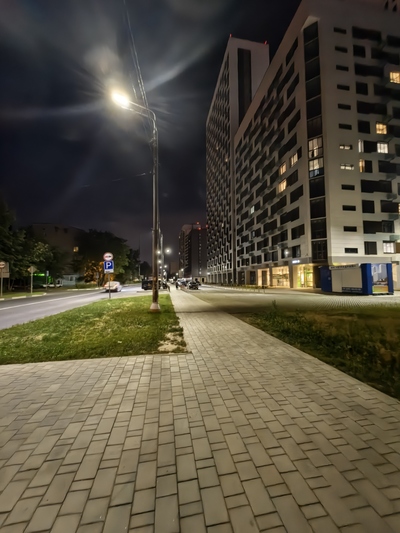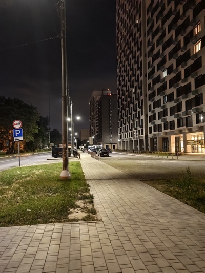 В условиях с низкой освещённостью широкоугольная камера отлично снимает даже без ночного режима. Снимки богаты на детали, а цвета выглядят натурально, но динамический диапазон, как и в дневное время, мог бы быть и лучше. Шумов практически нет, а источники света отражены естественно. При активации ночного режима яркие цвета становятся более насыщенными, а количество деталей увеличивается, особенно в тенях.