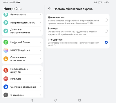 Этот экран тоже поддерживает частоту обновления до 120 Гц, и производитель уверяет, что наличие LTPO имеется. Но по факту мы не нашли подтверждения последнего при использовании.