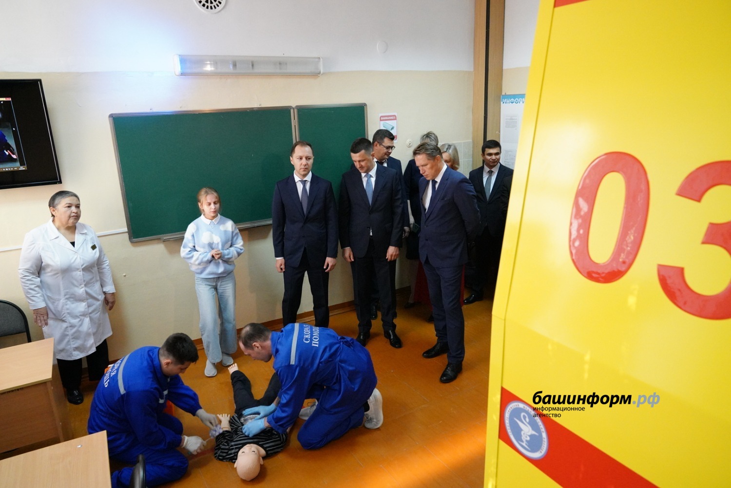 Михаил Мурашко вместе с руководителем администрации Главы Башкортостана Максимом Забелиным и министром здравоохранения республики Айратом Рахматуллиным посетили кабинеты лечения пациентов хирургического профиля, физиологического акушерства, здорового человека и его окружения и пообщались со студентами.