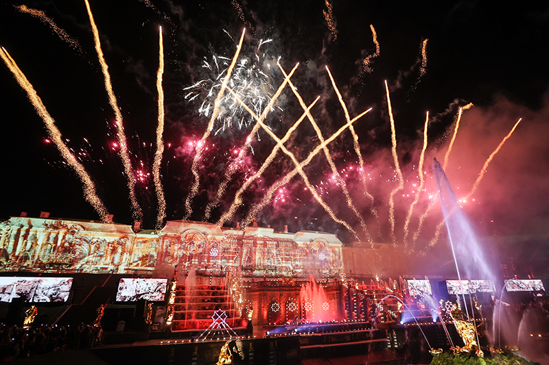 Современные хранители трепетно относятся к идеям основателя Петровского фонтанного парка: словно специально для него, в гротах Большого каскада и на террасах для шоу построили декорации иллюминационных сооружений XVIII-XIX веков. А фейерверки, освещающие небо, копируют исторические салюты.