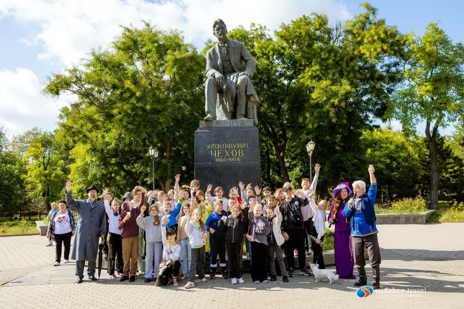 Но нам, таганрожцам, свои путешествия начинать стоит с родного города. В арсенале компании «Судаков Тревел» — множество тематических экскурсий по Таганрогу, среди которых — «Прогулки по Богудонии»; театральная экскурсия «Маленький Ла Скала», включающая просмотр спектакля; а с недавних пор – авторский проект современной таганрогской писательницы Надежды Феденко «Литературная дюжина»: на этой экскурсии школьники узнают о двенадцати литераторах, прославивших Таганрог в XIX-XX веках (Антон Павлович в этот перечень не входит, зато входит его старший брат Александр Чехов).