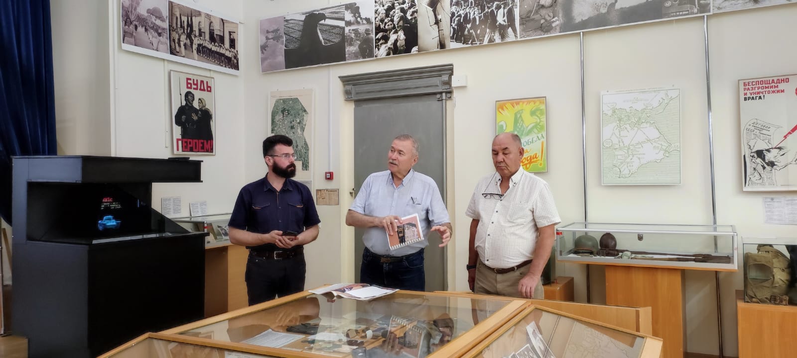 Владимир Кропчев (член Тюменского отделения Международной общественной организации «Императорское Православное Палестинское Общество», директор фонда «Наш выбор – Малая Родина» — соавтор (наряду с доктором исторических наук А. Вычугжаниным) рукописи, посвящённой страницам биографии одного из главных крымских подпольщиков) в музее города Симферополя не в первый раз. На этот раз с ним член попечительского совета Тюменского индустриального университета, кандидат технических наук Ахтям Идрисов.