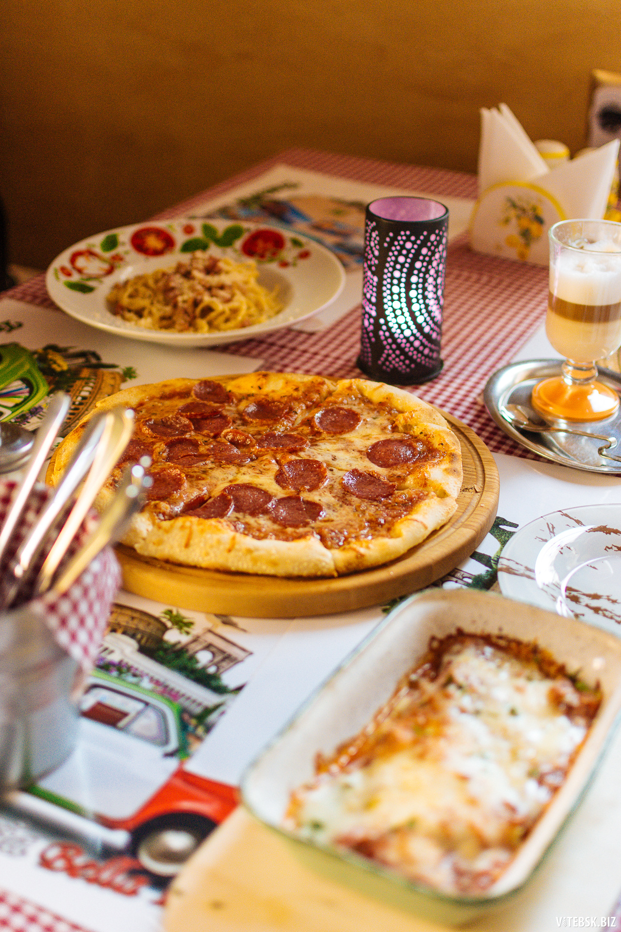 Это всё ваши пятизвёздочные отзывы, читатели. Именно это изобилие восторгов и звёзд привело нас в место под названием «Белла Италия». Мы не знаем кафе это, просто пиццерия или ресторан, но для сохранения атмосферы солнечной Италии пусть это будет ресторанчик. Так красивее, аутентичнее и приятнее для слуха. Итальянский ресторанчик «Бэлла Италия» в глубине Витебска.