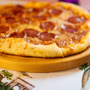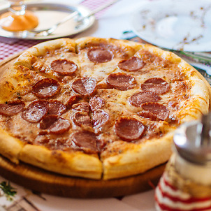 Мы долго определялись с заказом. Вспоминали отзывы у нас на портале и думали, что бы такого взять. В итоге выбор был сделан: пицца с салями, паста карбонара, лазанья с салями, тирамису и два кофе — латте и капучино.