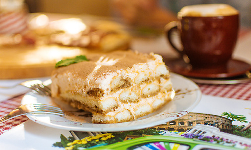 «Без десерта мне уйти было сложно, к тому же паста и пицца были недоедены ради сохранения места. И снова меня удивил размер — где-нибудь на Суворова вам разрежут этот кусок пополам либо радостно умножат стоимость в счёте на 2. Я честно скажу, что съела половину и попросила забрать с собой. Я всем советую попробовать тут тирамису — он очень нежный, пропитанный, не приторно-сладкий, а такой приятный, с ноткой горечи какао. Максимально домашний. Как будто мама на день рождения делала :) Единственное, что не очень понравилось — это кофе. Для меня был с горчинкой, но это абсолютная вкусовщина. Мой бессменный напарник, например, радостно прихлёбывала латте и была вполне довольна».