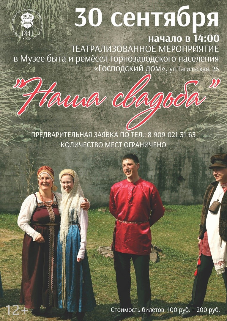 Жители и гости города смогут стать участниками красивого свадебного обряда XIX века и прожить все этапы праздника вместе с актёрами и фольклорным ансамблем «Соловейка». Предварительная запись обязательна.