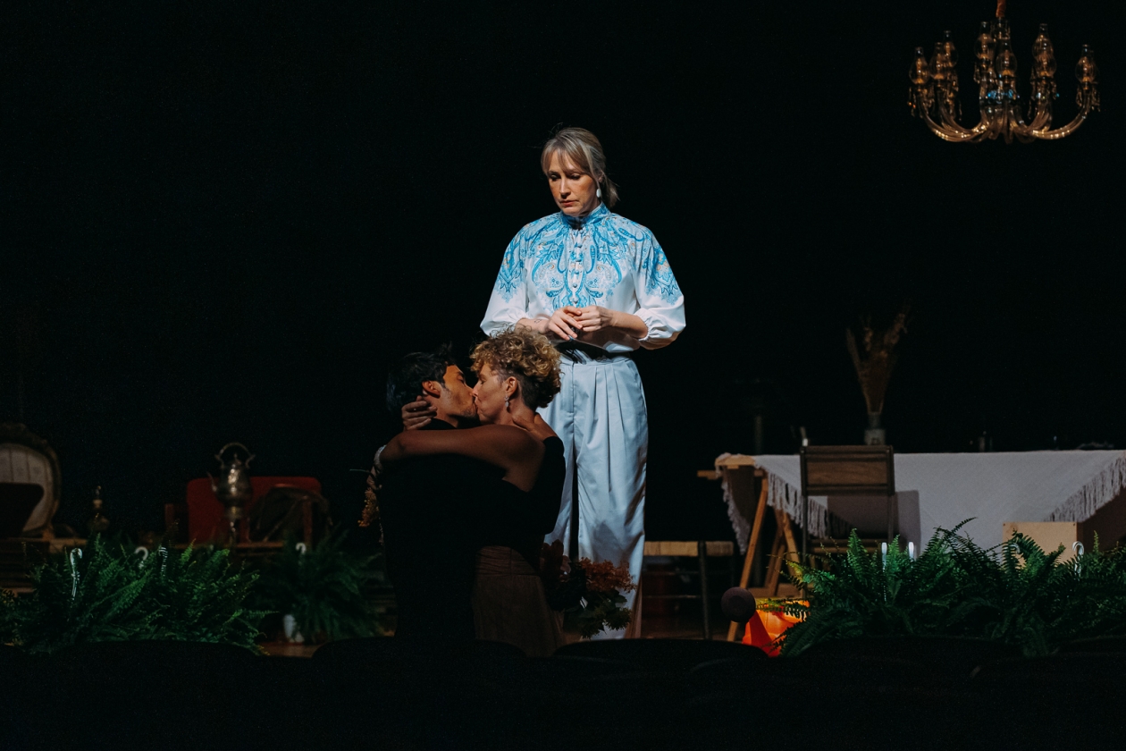 Хороша, как мне кажется, идея разбить действие на три картины, каждая из которых является очередным днем рождения Ирины. Но поскольку это еще и годовщина смерти их отца, праздник приобретает трагические, даже безысходные нотки. То ли aniversário, то ли velório.