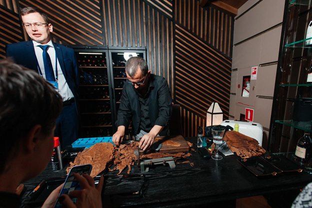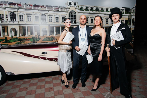 Снова сгруппироваться участников заставил выездной ужин. Новый дресс-код: Cocktail Attire. Вечеринка стартовала в стилистике 30-х годов. В ресторане «D. O. M» публику встречали артисты в костюмах того времени, ретроавтомобиль и джазовая группа. В антуражных декорациях состоялось и танцевальное шоу. Позже для посетителей на третьем этаже открылось «подпольное казино». Вокруг трех столов толпились счастливые игроки: «Все на красное!». А почему бы не быть счастливыми? За игру не пришлось платить из своего кармана — напечатанные на офисном принтере купюры, выдавали прямо на входе в ресторан. За одним из столов для джентльменов работал торседор — специалист, который вручную из листьев табака скручивает сигары.