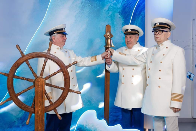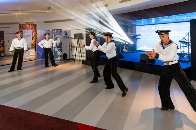 А позже в отеле Pullman состоялся вечер открытия форума. «Рекомендуемый дресс-код-морской стиль и белый цвет», — объявил telegram-бот форума за несколько часов до начала. В «Б.О» выбрать нужные луки успели не все. А вот президента ассоциации Георгия Лунтовского, и основателя АРБ Александра Мурычева и Анатолия Аксакова облачили в морские кители и объявили капитанами мероприятия.