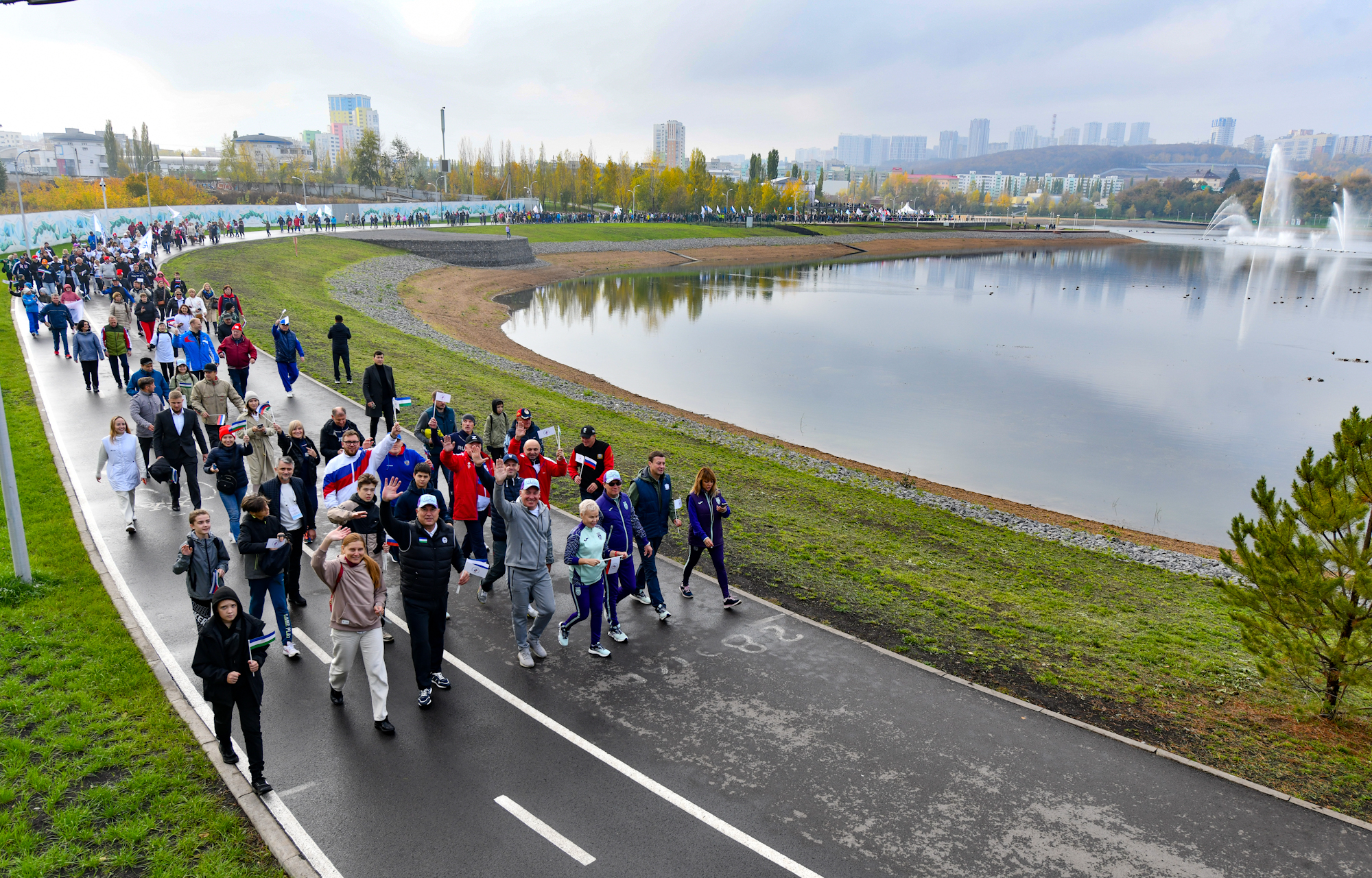 Местом проведения Всероссийского дня ходьбы в Уфе на этот раз стал Парк культуры и отдыха «Кашкадан». Почетные гости праздника вместе с жителями города совершили бодрую пешеходную прогулку вокруг одноименного озера. Протяженность маршрута составила ровно 2023 метра.