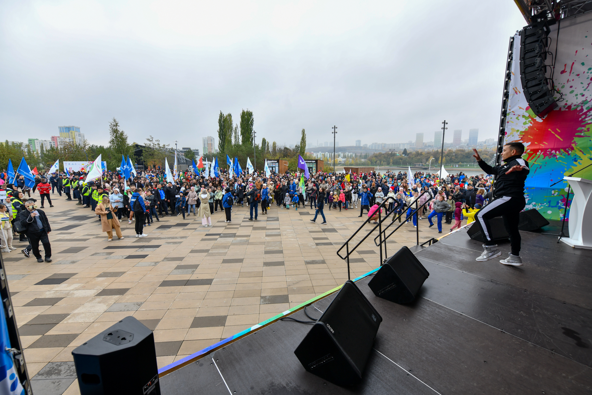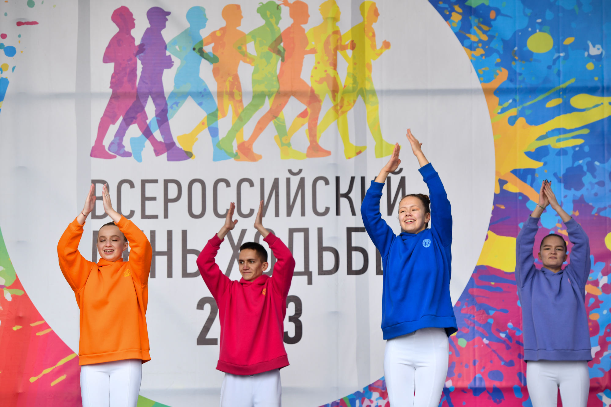 Для любителей спортивной ходьбы организаторы мероприятия подготовили зарядку с фитнес-инструктором и Олимпийскими чемпионами, творческую и спортивно-развлекательную программы, авиашоу пилотажной группы «Первушино», показательные выступления по волейболу, баскетболу, гребле на байдарках и каноэ, велосипедному спорту, роллер-спорту, мас-рестлингу, армрестлингу, спортивному метанию ножа, прыжкам на батуте, чир спорту, комплексу ГТО.