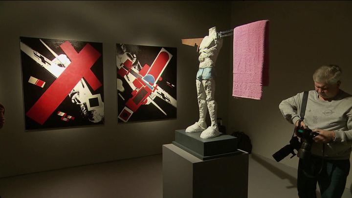 "Он пытается вытереть из себя воду, просушить себя, то есть это момент равновесия, некая странная, но гармония", – пояснил художник Сергей Шеховцов.