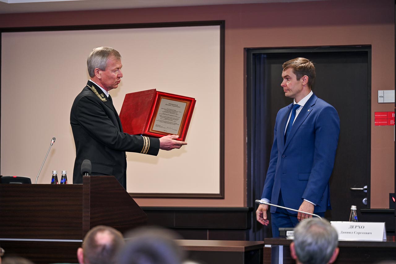 Владислав Анатольевич вручил председателю Арбитражного суда Ямало-Ненецкого автономного округа Дерхо Даниилу Сергеевичу приветственный адрес.