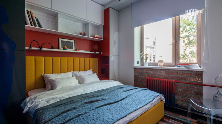 Спальня для художников: как безликая и неудобная комната засияла новыми красками