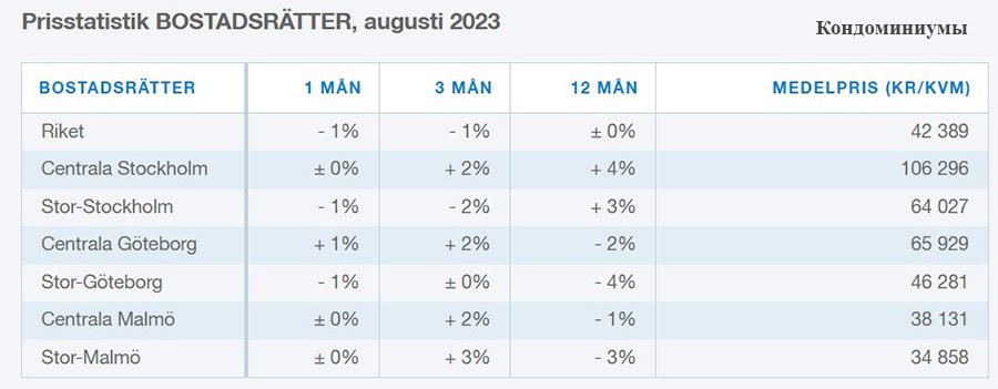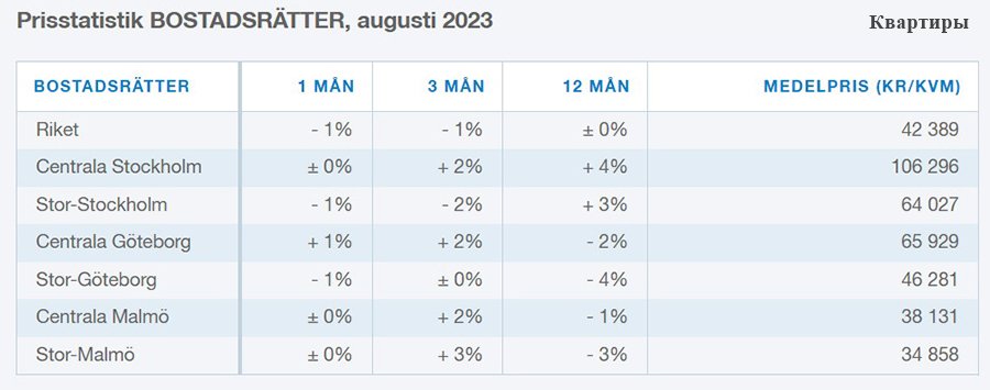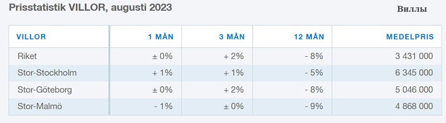 Ниже представлена статистика Svensk Mäklarstatistik, основанная на продажах с июня по август 2023 года.