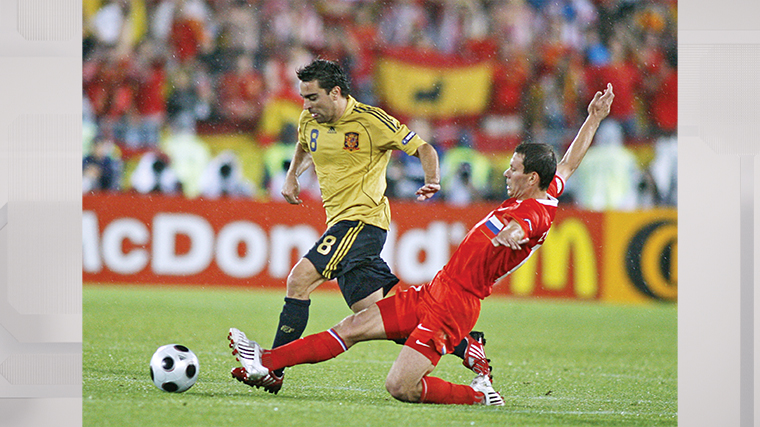 Во второй половине подопечные Гуса Хиддинка встрепенулись, постаравшись подавить испанцев своей активностью, но запал постепенно выходил. Развернутая испанцами быстрая атака в очередной раз расколола российскую оборону, Сеск Фабрегас отпасовал в штрафную Вилье, тот развернул Романа Широкова и первым на Евро — 2008 оформил хет-трик.