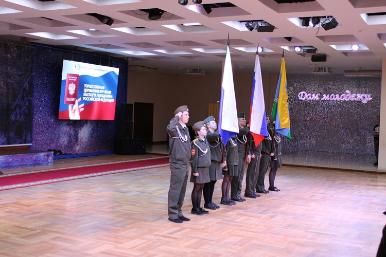 В актовом зале Дома молодежи г. Комсомольска-на-Амуре сотрудники отдела по вопросам миграции совместно с городским отделом образования в торжественной обстановке вручили юным комсомольчанам паспорта граждан Российской Федерации. В День Хабаровского края на сцену Дома молодежи поднялись 83 школьника, которым накануне торжественной даты исполнилось 14 лет.
