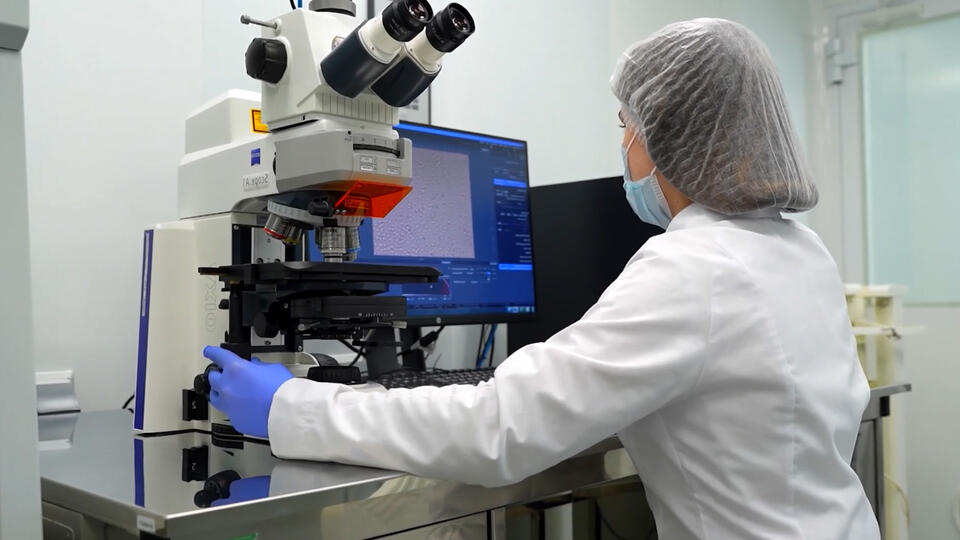 "Биомассы сушатся до порошкообразного состояния, которое является нашим конечным продуктом. Вот сюда попадает тот порошок, который представляет из себя высокобелковую биомассу, порядка 78 процентов сырого протеина", – говорит руководитель отдела физико-химической аналитики компании – производителя микробного белка Яков Бреев.