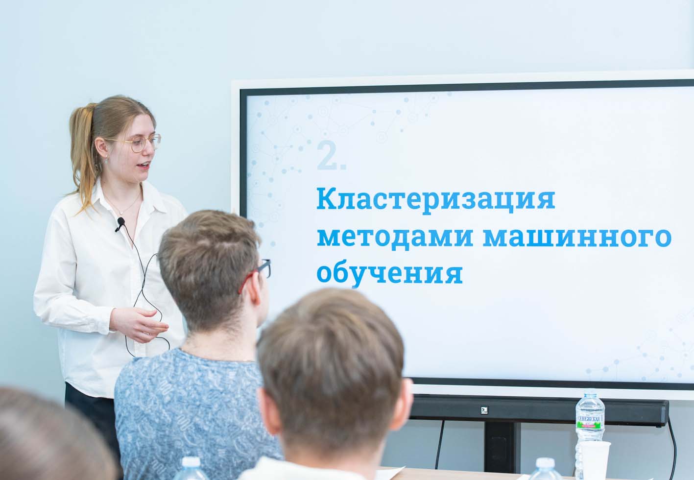 Студент химического факультета Дмитрий Филатов использовал сочетание физико-химических параметров и методов машинного обучения в кластерном анализе водных дисперсий оксида графена. Оксид графена был открыт относительно недавно – в начале XXI века, у него много перспективных областей применения в фармакологии и биомедицине, в частности оксид графена используется для диагностики раковых заболеваний. «Выделив несколько кластеров, мы можем провести дополнительное исследование и сделать вывод о наличии либо отсутствии антиоксидантных свойств, что необходимо для развития возможностей в медицине», – подытожил Дмитрий Филатов. Студентка физического факультета Устина Багрянская кластеризовала функциональные участки тканей щитовидной и паращитовидной желёз по данным их флуоресцентного отклика. Для этого Устина использовала два метода: «ручной» способ и с помощью машинного обучения. В результате работе оказалось, что машинные методы обнаруживают закономерности, не заметные для исследователя: они относят каждый пиксель к какому-либо кластеру, в то время как ручной метод оставляет часть пикселей некластеризованными.