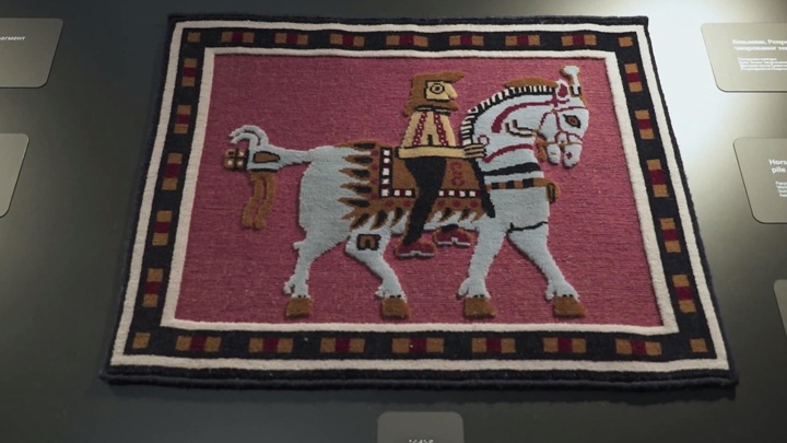Барельефы, тактильные копии, аудиоматериал. Первоначально этот проект был разработан для слабовидящих посетителей Эрмитажа, но выяснилось, что тактильный подход к искусству понравился и широкой публике. Все хотят прикоснуться к шедевру. Вот, например пазырыкский ковёр – самый древний в мире, V век до нашей эры. Оригинал хранится в Эрмитаже.
