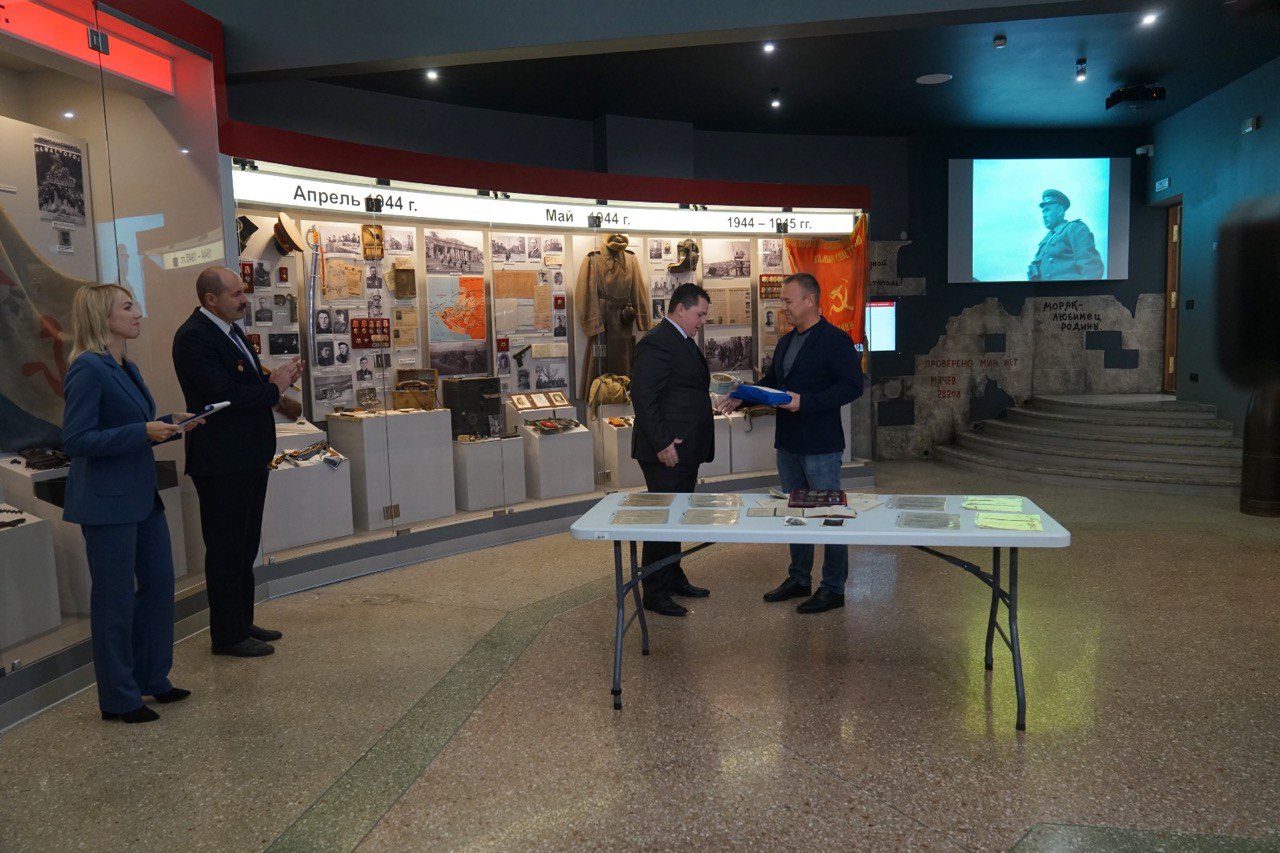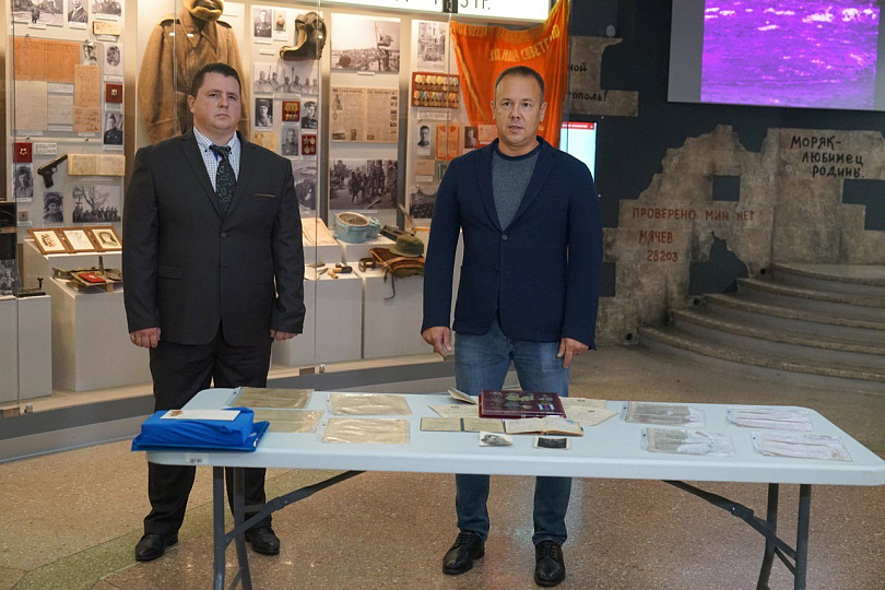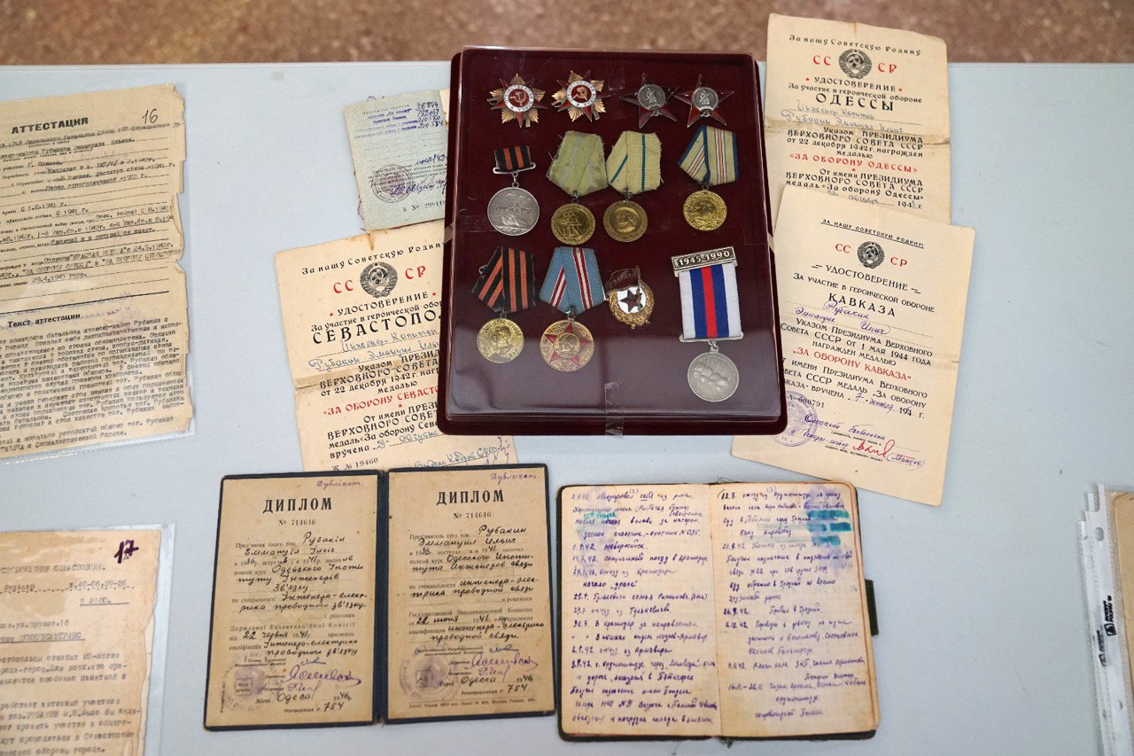 30 октября, в годовщину начала героической обороны Севастополя 1941–1942 гг. состоялась церемония передачи документов и наград участника Великой Отечественной войны Эммануила Ильича Рубакина. В период обороны Севастополя 1941-1942 гг. младший военный техник, начальник телефонно-телеграфного отделения армейской передвижной мастерской связи Приморской армии руководил организацией и обеспечением связи штаба армии с военными частями и подразделениями. «Так совпало, что ровно семь месяцев назад, 30 марта 2023 года, к нам обратилась дочь ветерана, который защищал в 1941–1942 годах город от фашизма. Пришло письмо от Риты Токаревой, где она просила о помощи в передаче из Соединенных Штатов Америки наград ее отца. Сегодня документы и ордена Эммануила Ильича Рубакина, передаются Музею обороны Севастополя благодаря усилиям наших коллег из Министерства иностранных дел и напряженной работе главного хранителя музея Тамары Алексеевны Хвальковой», – отметил директор Музея обороны Севастополя Михаил Смородкин. Спустя 82 года в истории Севастополя, в его героической летописи появилась еще одна страница с историей человека, который защищал осажденный город. Его дочь, Рита Токарева, обратилась в Музей обороны Севастополя со словами: «Пишет вам дочь ветерана Рубакина Эммануила 1910 г.р. Я храню награды моего отца. Мне 75 лет и передать их некому. Поэтому обращаюсь к Музею обороны Севастополя сохранить их. Живу в США 45 лет и здесь они никому не нужны… Пожалуйста, помогите!». В процессе общения с Ритой Токаревой выяснилось, что она, действительно, прожила 45 лет в другой стране, в сознательном возрасте покинув Советский Союз. Отец ее, Эммануил Ильич Рубакин, свои последние годы тоже провел не в Советском Союзе. «Для меня оказалось удивительным то, что страна, позиционирующая себя как один из главных победителей в Великой Отечественной войне, тем не менее не нуждается в истории личностей, которые создавали историю и вели к Победе, – обратилась к участникам мероприятия главный хранитель Музея обороны Севастополя Тамара Хвалькова. – Но для нас это великая честь, когда мы можем ввести в историю еще одну личность и еще одного человека. И, надо сказать, что документы и награды, которые Рита нам передала, они действительно, очень интересны с точки зрения научной. Среди них – копия дневника, где есть записи о событиях начала и окончания обороны Севастополя». Согласно заметкам в дневнике, Эммануил Ильич Рубакин прибыл в Севастополь 13 октября 1941 года, т.е. еще до начала обороны, в дни эвакуации из Одессы. И последняя запись по севастопольскому периоду – 3 июля 1942 года, он пишет, что эвакуировал себя сам, вплавь догонял катер номер 035 – так произошло с его слов «счастливое спасение». На мероприятии по передаче культурных ценностей присутствовали представители Министерства иностранных дел России в г. Симферополе. Березовский Артем Витальевич отметил, что передача наград и документов из США – это очень ответственная миссия. По его словам, подобные мероприятия – это не разовая акция. «Очень много наших сограждан, которые живут на разных концах нашей планеты, выходили с похожими инициативами. И я уверен, что подобная работа будет продолжаться. Мы совместными усилиями будем сохранять память о наших великих предках», –отметил Артем Березовский. Музей обороны Севастополя б