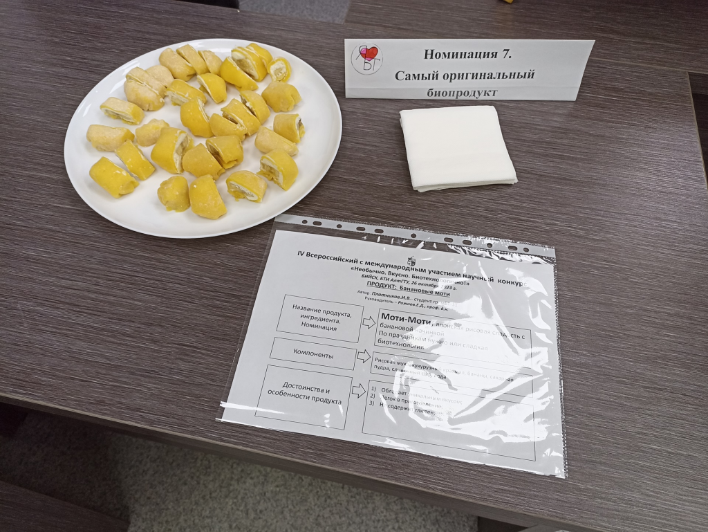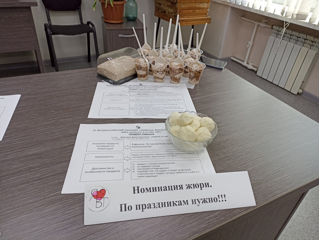 26 октября 2023 года прошел VI-й Всероссийский с международным участием научный конкурс «Необычно. Вкусно. Биотехнологично», организованный кафедрой «Биотехнология» Бийского технологического института (филиала) Алтайского государственного технического университета им. И.И. Ползунова.
