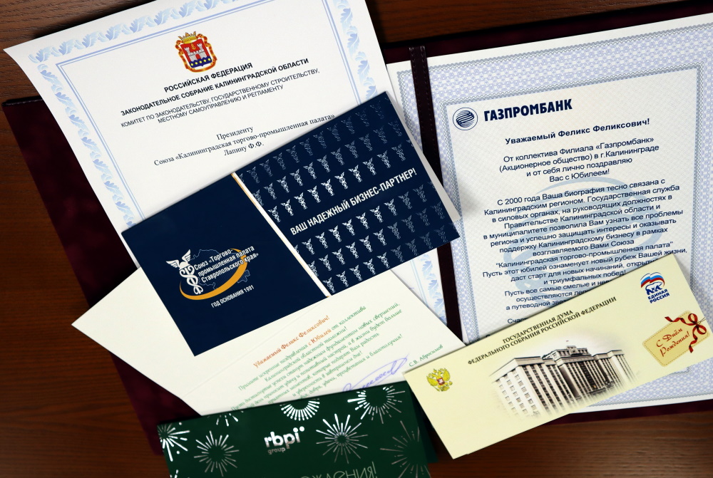 В адрес Союза «Калининградская торгово-промышленная палата» поступают поздравления с юбилеем президента Калининградской ТПП Феликса Феликсовича Лапина