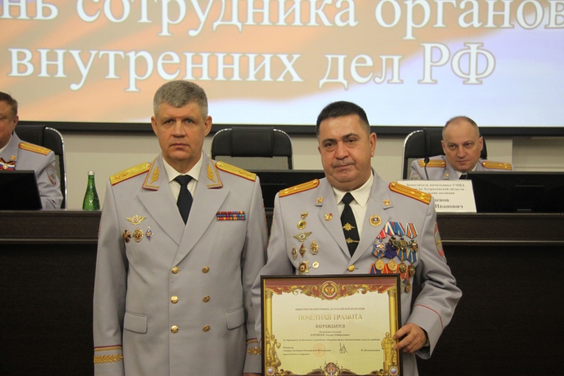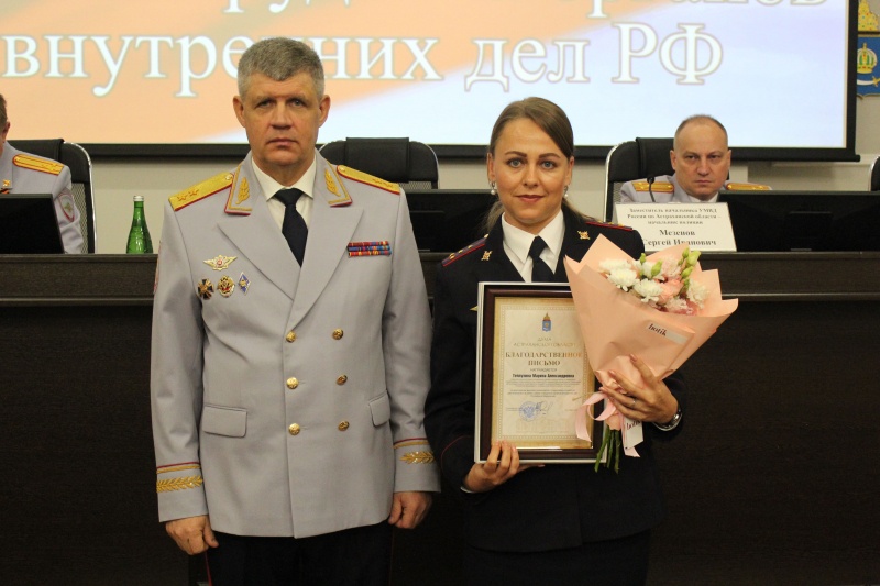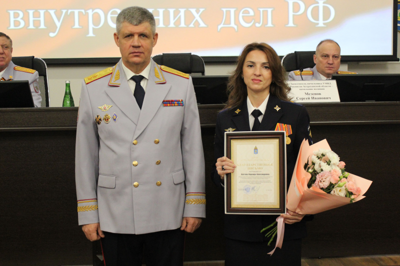 Девять отличившихся сотрудников органов внутренних дел поощрены Благодарственными письмами Губернатора и Думы Астраханской области, а также почетными грамотами Губернатора Астраханской области.