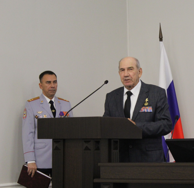 Председатель Общественного совета при региональном УМВД России Сергей Белявцев и председатель общественной организации ветеранов органов внутренних дел и внутренних войск Вячеслав Россашинский поздравили присутствующих и пожелали им крепкого здоровья и благополучия.