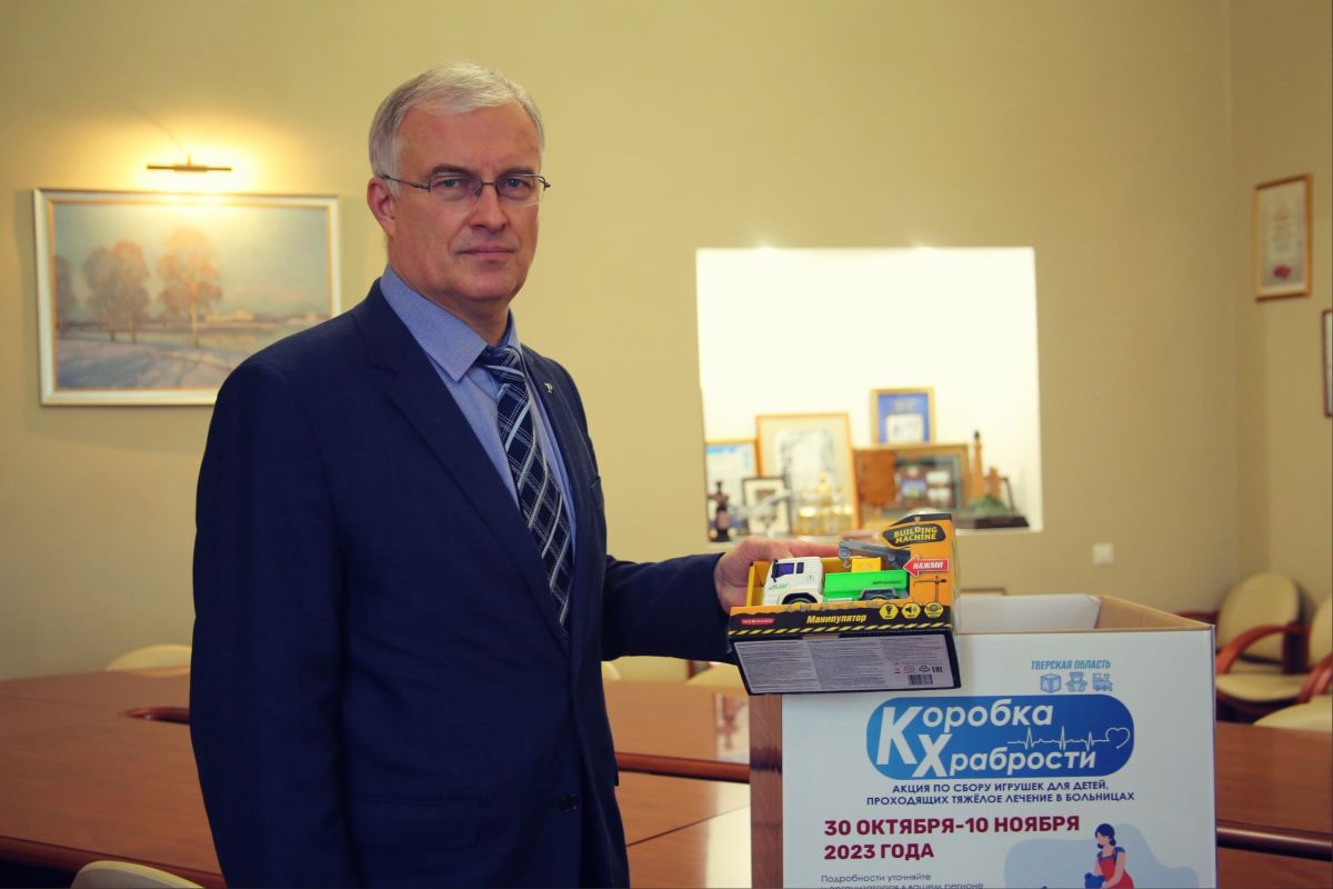В Тверской области председатель городской Думы Евгений Пичуев передал в детскую областную больницу машинки, конструкторы, фонари, куклы, наборы для творчества.